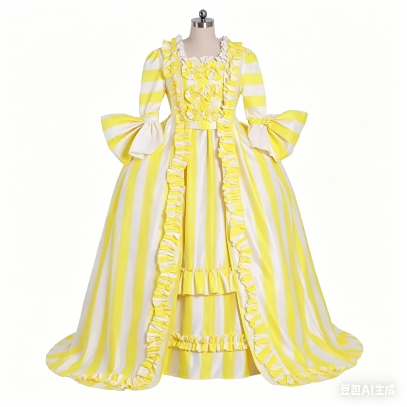 satin gloves—to fully embody the elegance of a court noblewoman. With its authentic Rococo design, premium craftsmanship, vibrant yellow hue, and