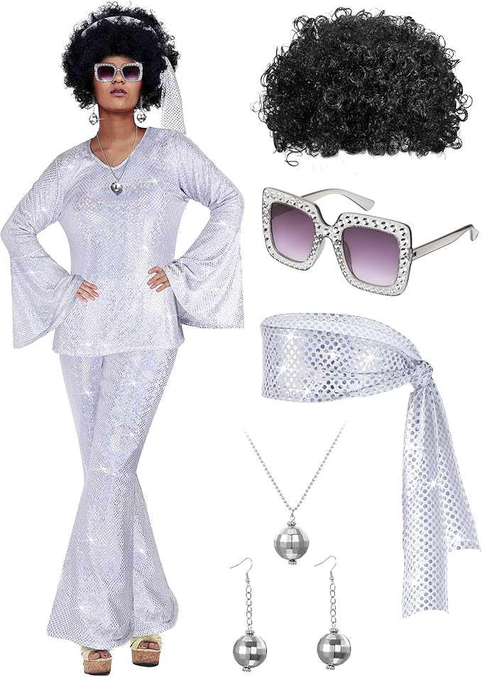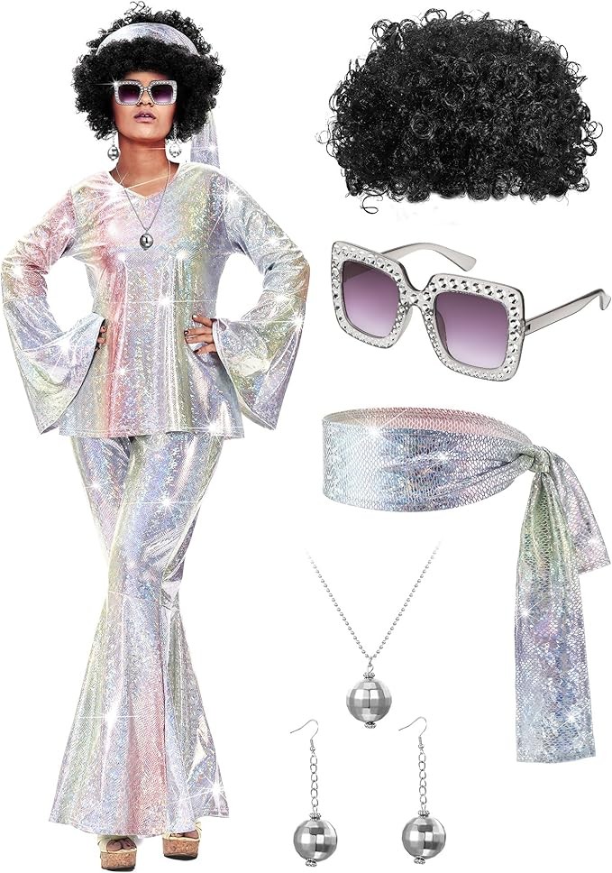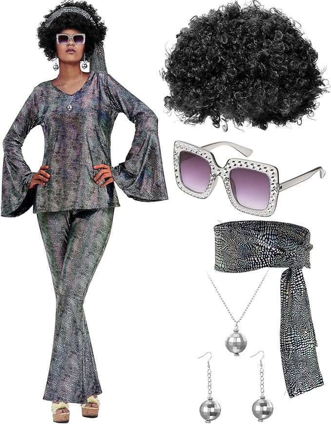 and a voluminous disco wig—perfect for standing out on the dance floor and capturing the spirit