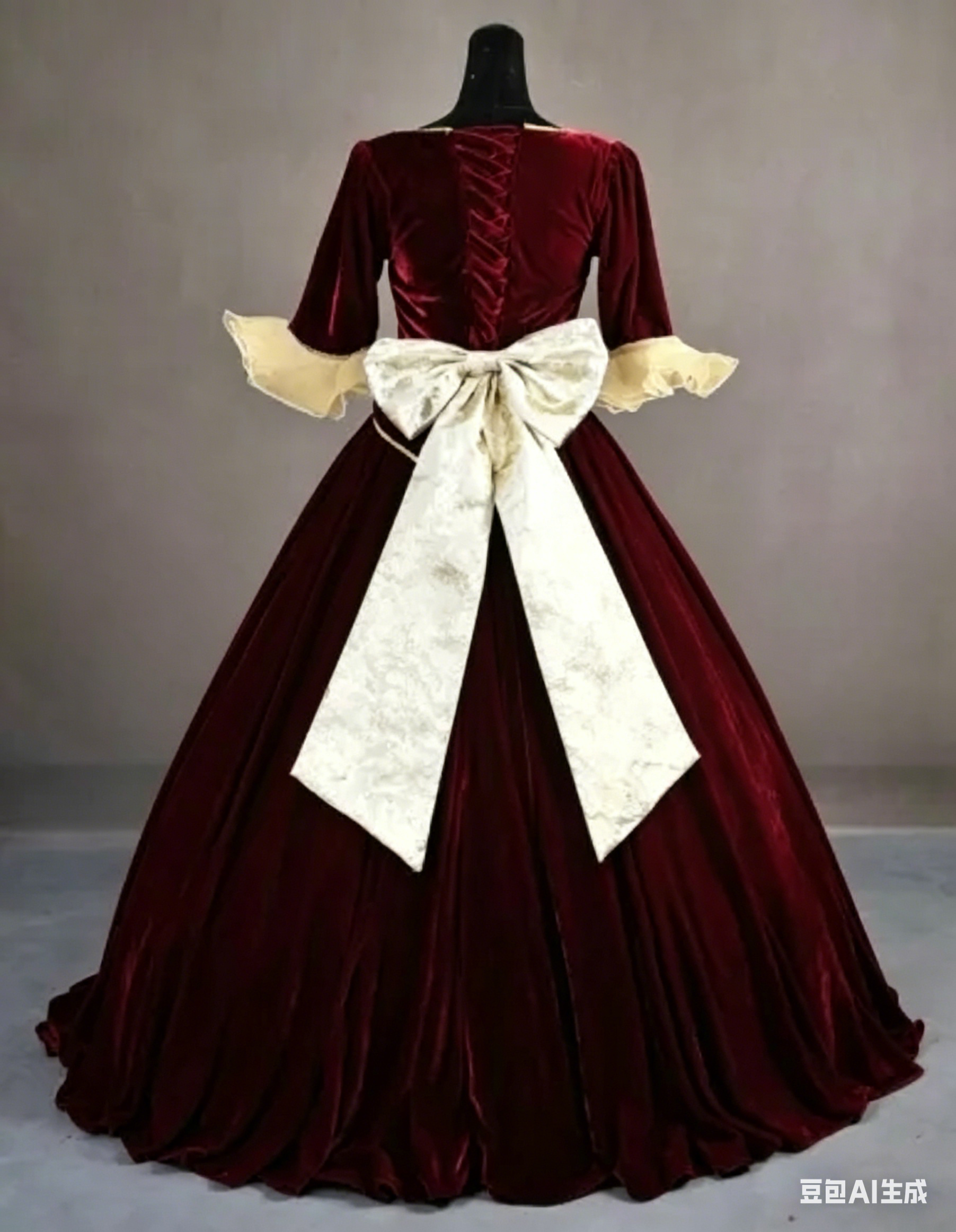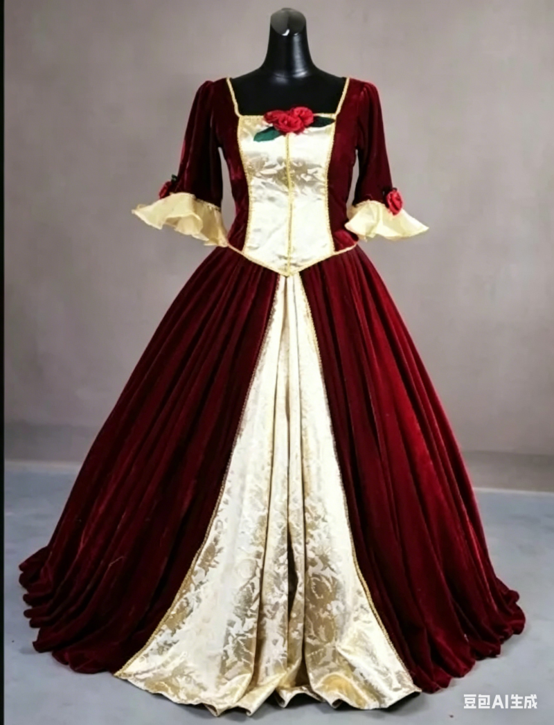 trims, decorative buttons, and a flowing train—adds a touch of elegance that makes this gown stand out at any Christmas ball or festive event.
