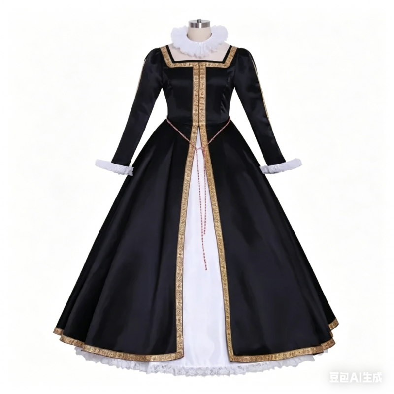 Embrace majestic royal vintage charm with our Black Tudor Renaissance Medieval Gown, an exquisite Queen Elizabeth period cosplay