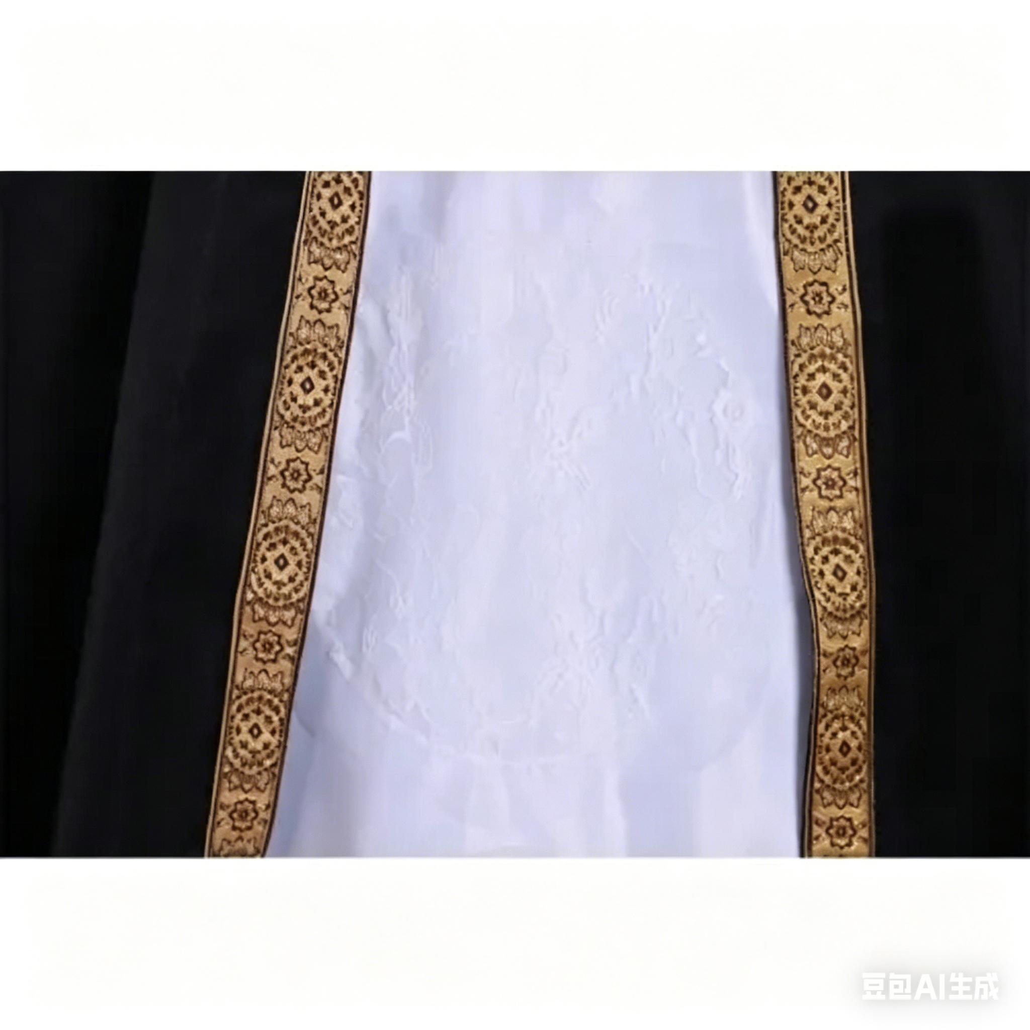 gown features iconic period silhouettes, elegant vintage tailoring, gorgeous layered details and solemn royal design language, perfectly