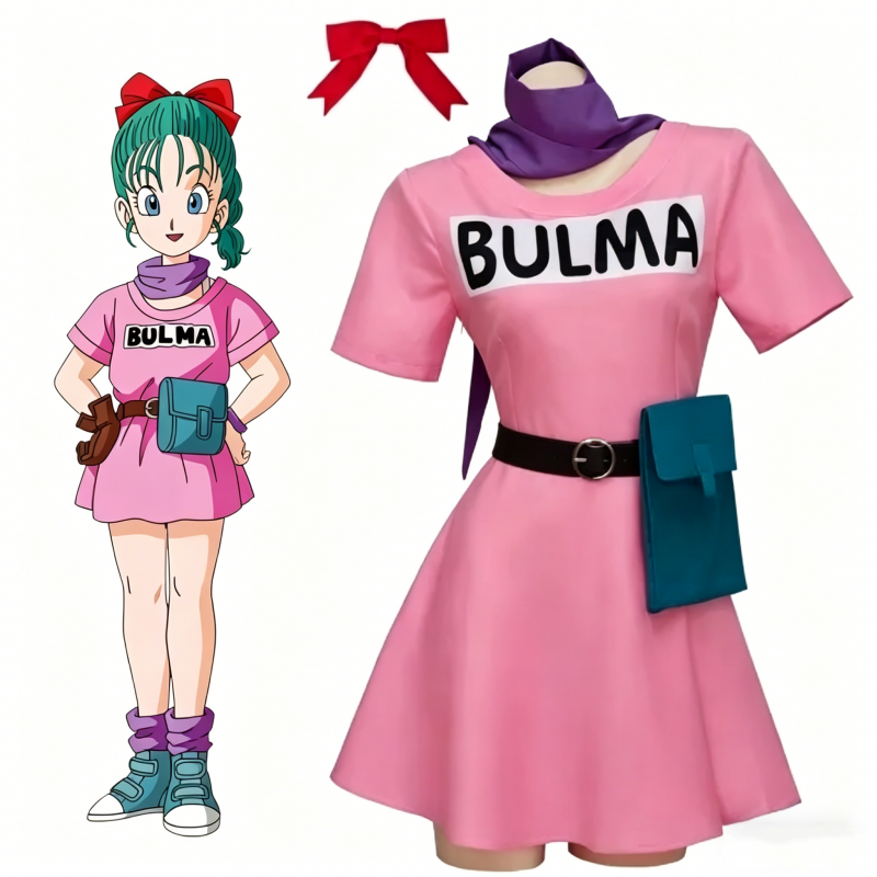 Bulma Cosplay Costume Pink Dress Set - Dragon Ball Z Outfit