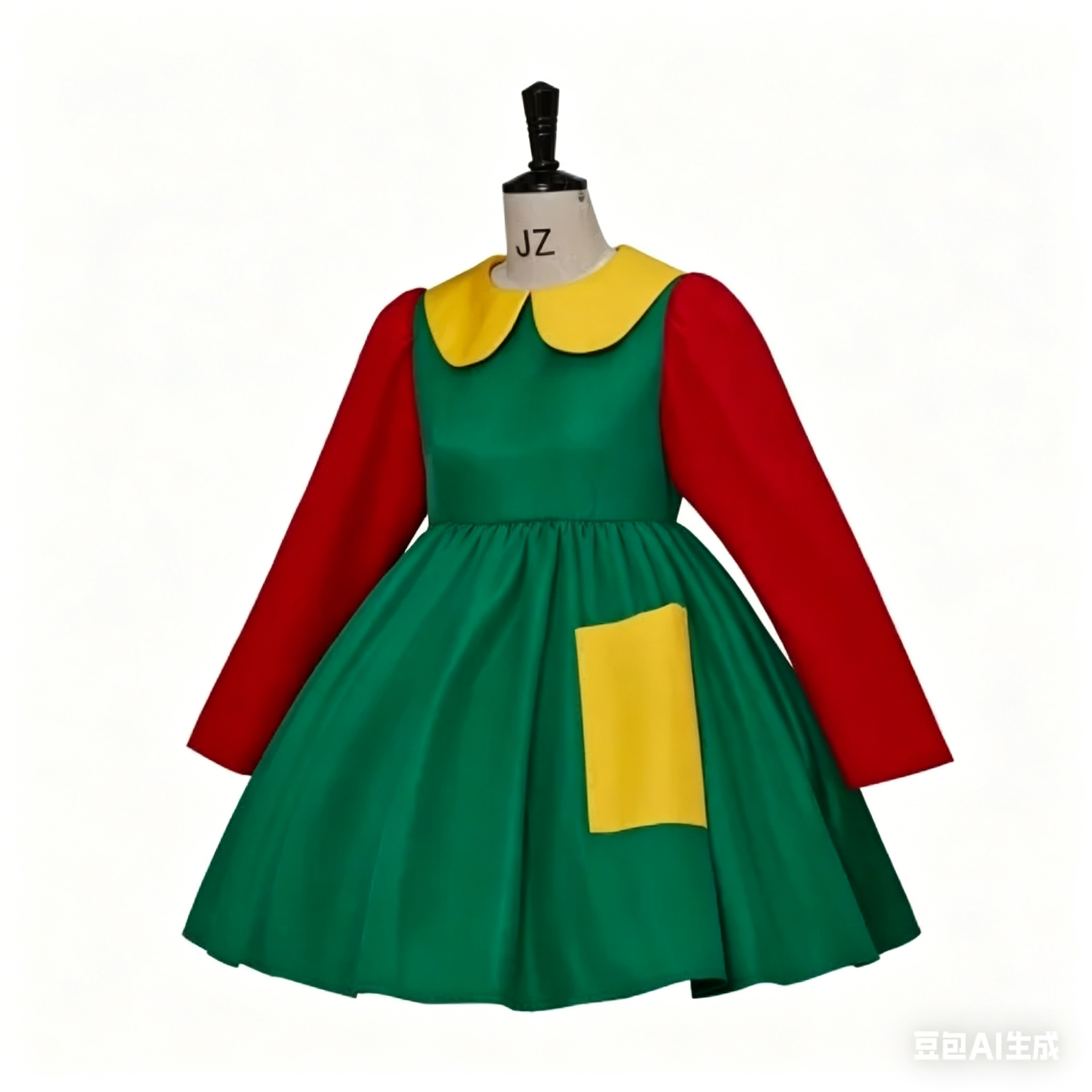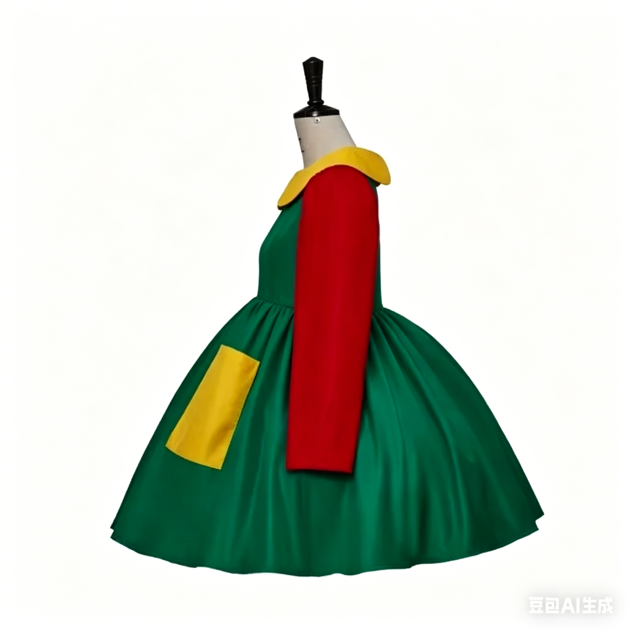 Step into the iconic role of La Chilindrina with this authentic La Chilindrina Red Sleeved Green Dress Cosplay
