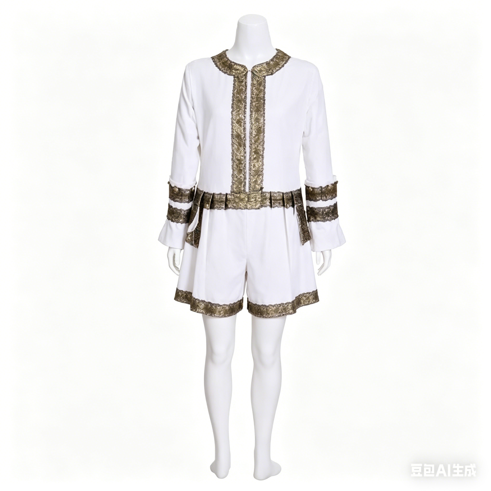 authentic Rococo and British Renaissance styling, this noble costume features elegant white tone tailoring, classic court structured silhouettes, delicate