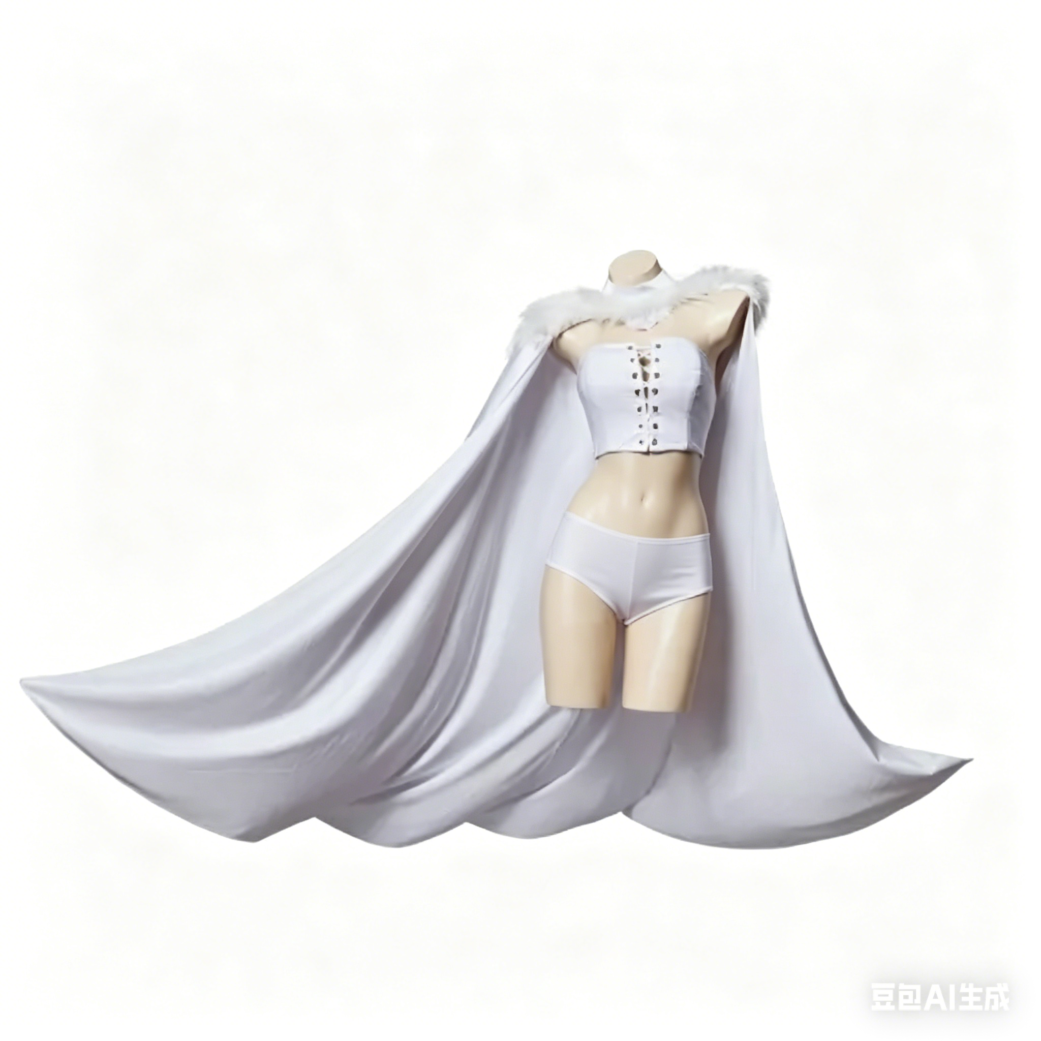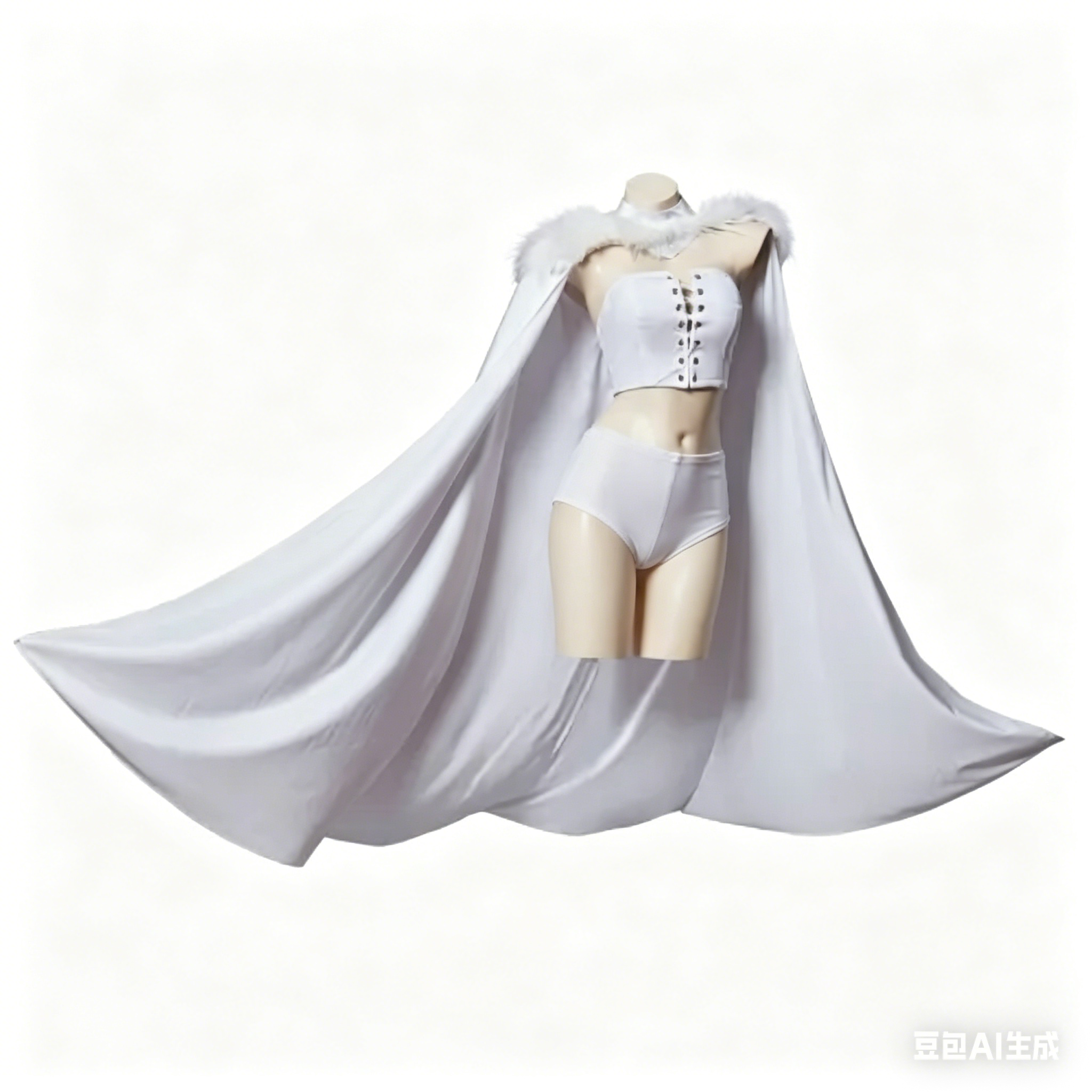 White Queen look, featuring a sleek, form-fitting Queen outfit that exudes authority, paired with a flowing cloak that adds drama