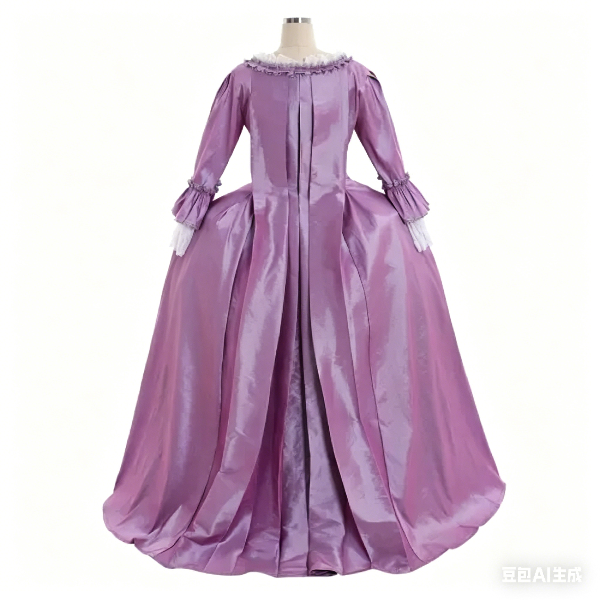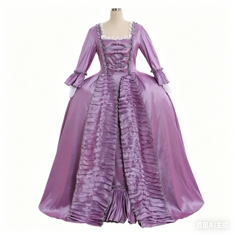 Available in custom sizes to ensure a perfect fit, this purple Rococo ball gown is a must-have for history enthusiasts,