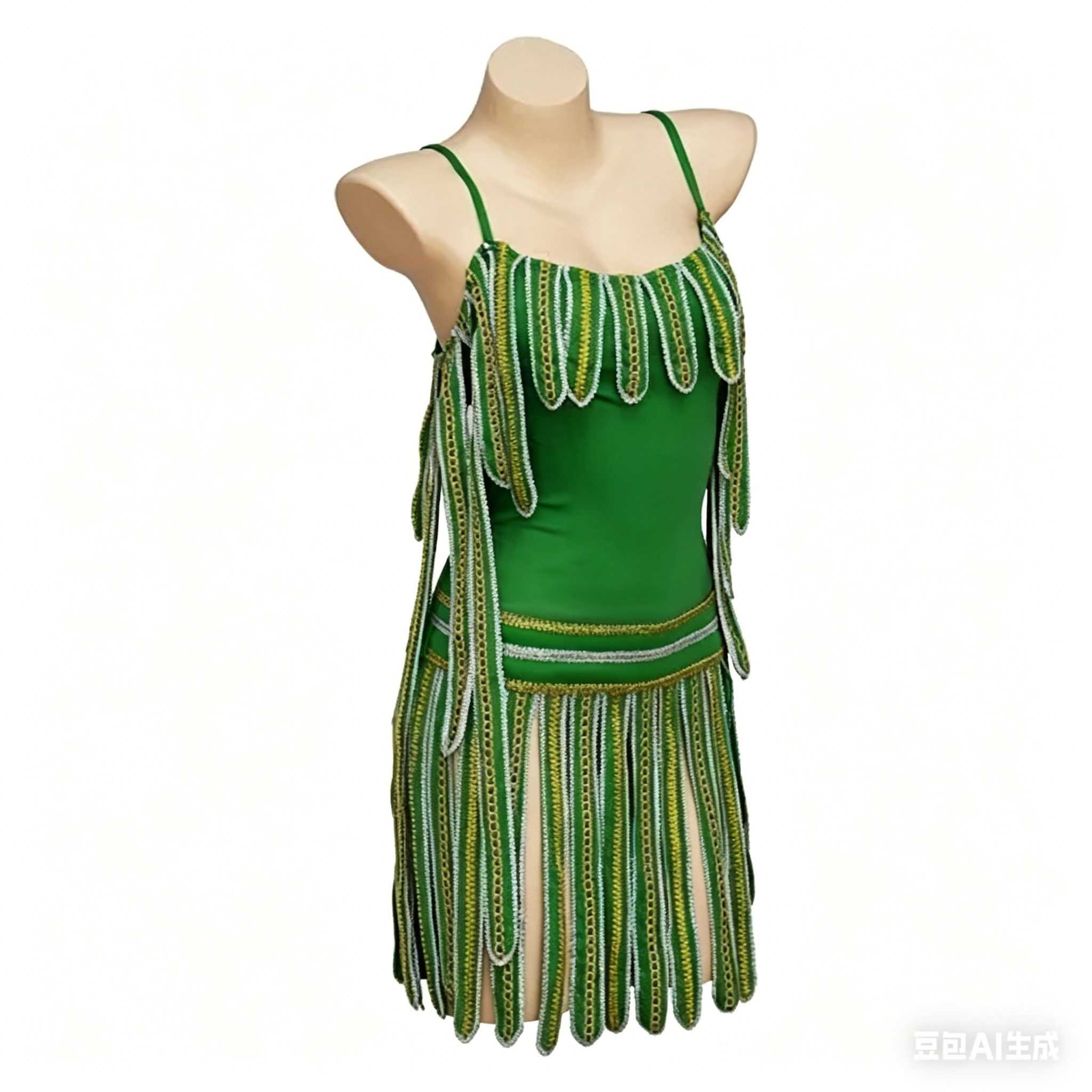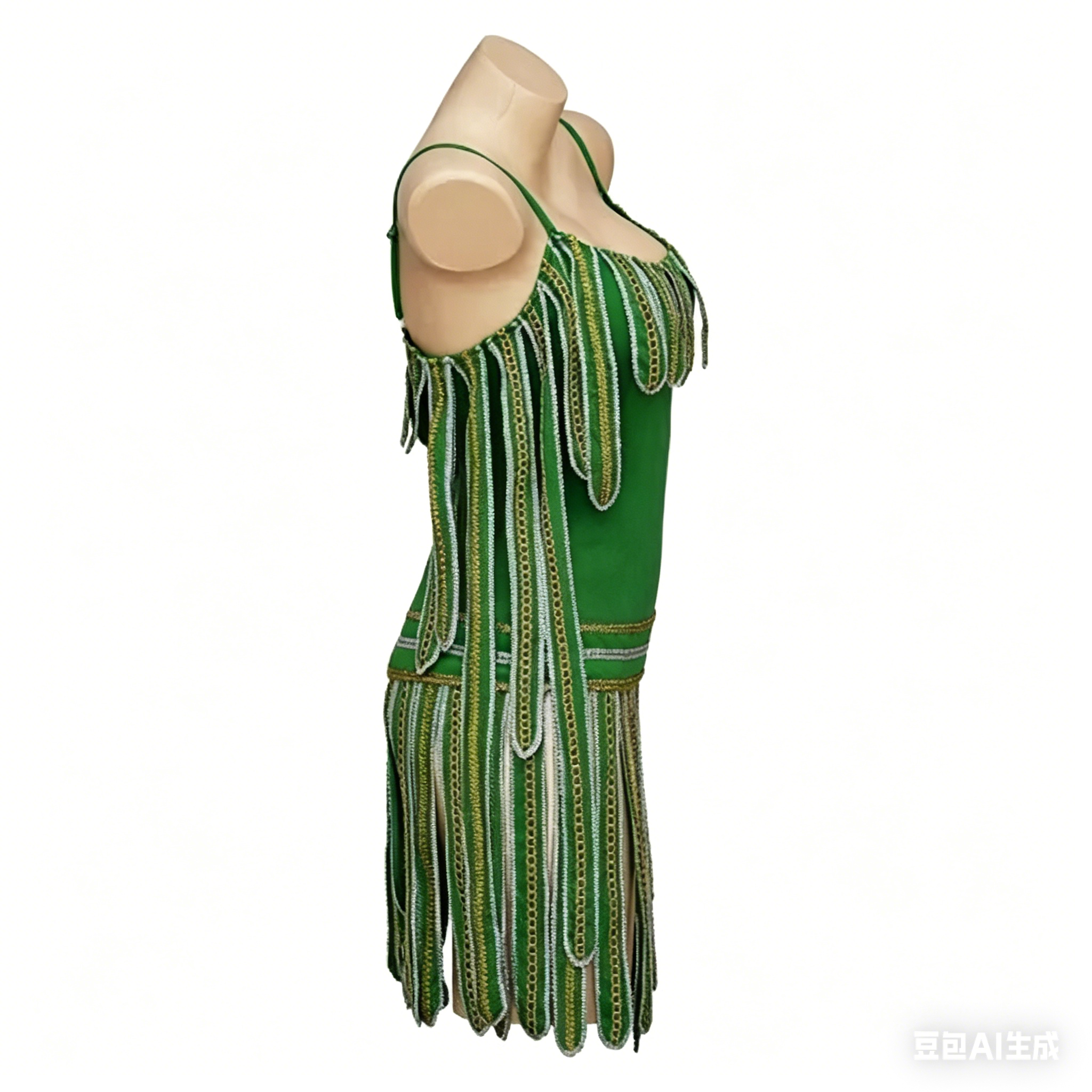 and comfortable straps that ensure a secure, flattering fit. Paired with the matching green strap skirt—featuring a flowy, playful design