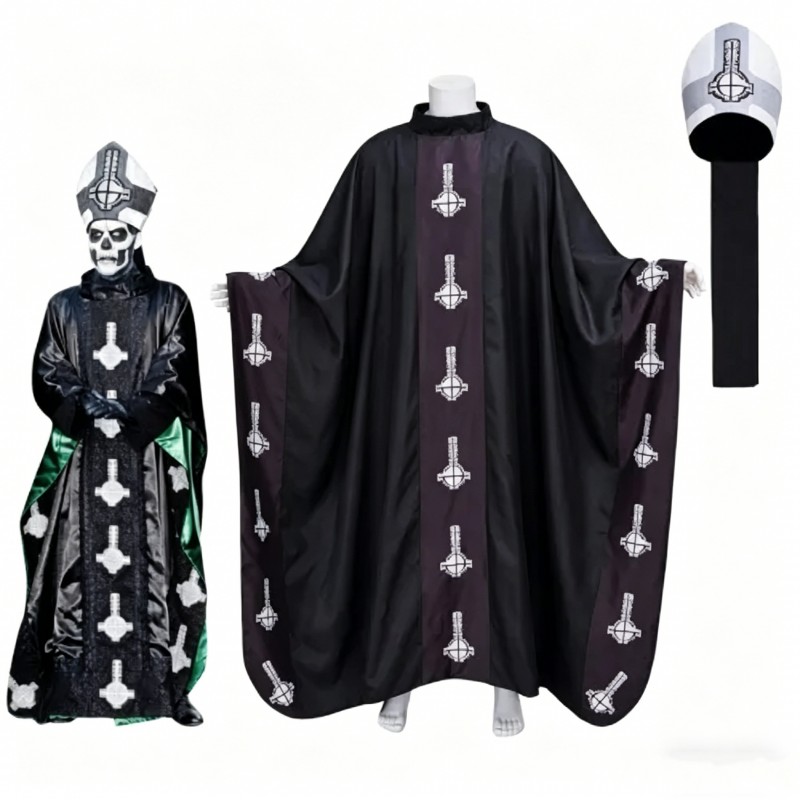 Crafted from lightweight, durable fabric, the robe offers a comfortable, roomy fit for all body types, with smooth seams and clear, long-lasting prints. Whether you're attending a Ghost concert, Halloween party, metal-themed event, or cosplay convention, this costume lets you embody the mysterious persona of Papa Emeritus with full accuracy. Available in multiple sizes for adults, with optional custom sizing for a tailored fit. A must-have for any