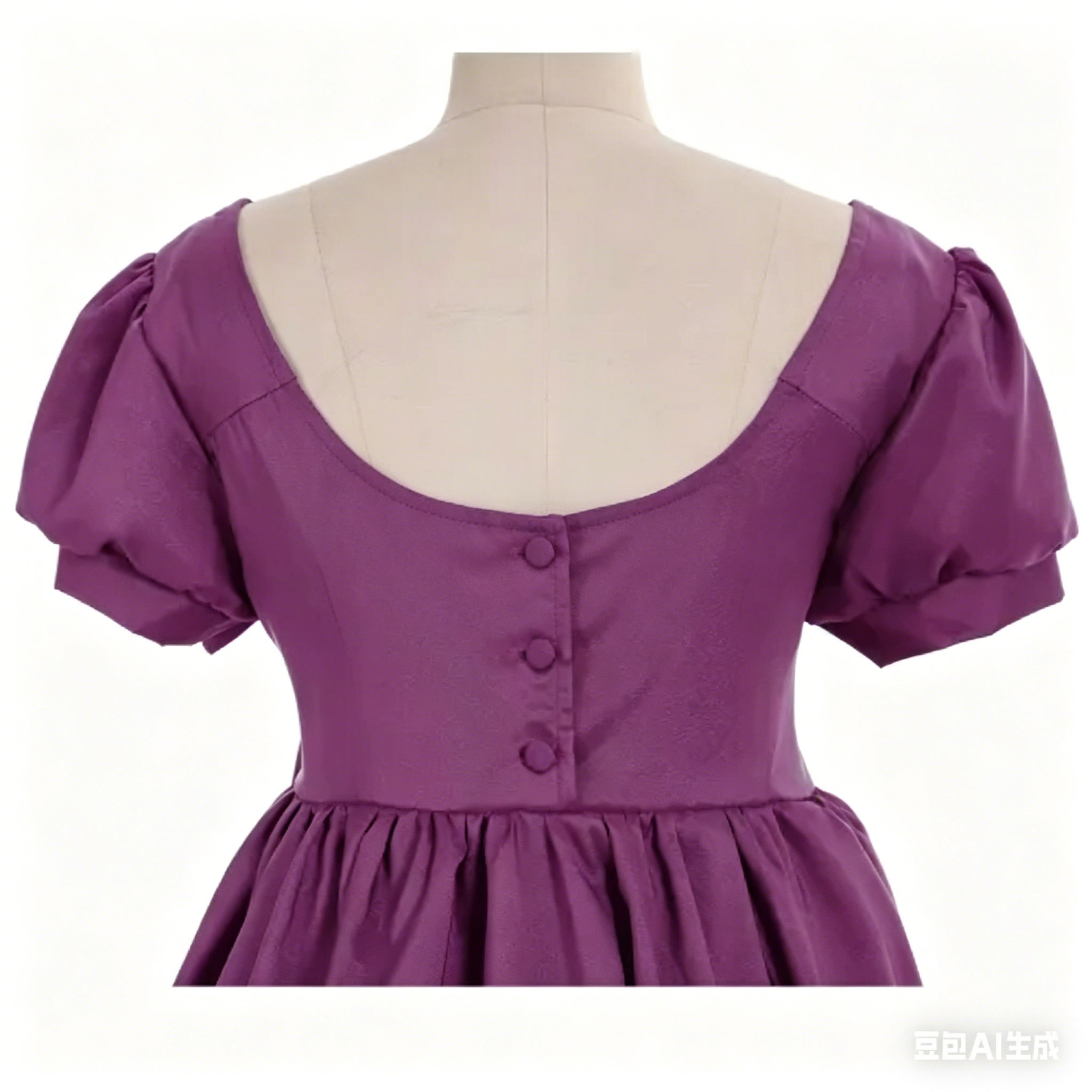 its natural beauty and the rich purple hue. The high waistline flatters all body types, cinching at the waist to create a feminine silhouette,