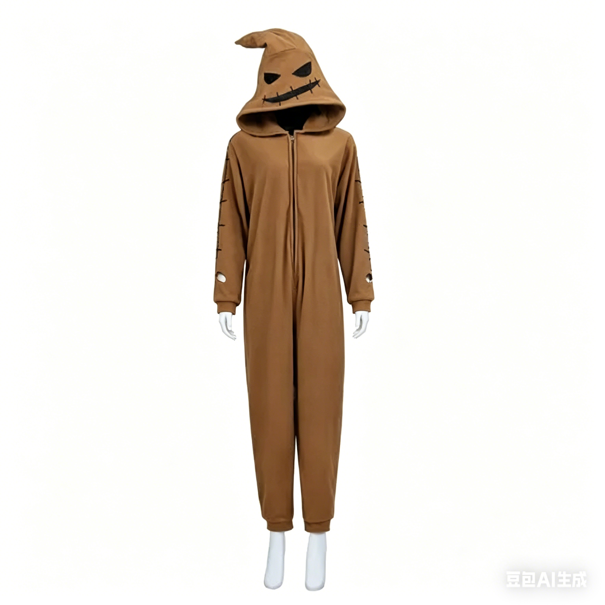It features a full-length zipper closure, loose fit for easy wearing, and vivid Oogie Boogie pattern and details to