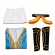 white DLC design with intricate gold trim or the earthy brown and green tones of her standard ensemble—paired with a sleek,