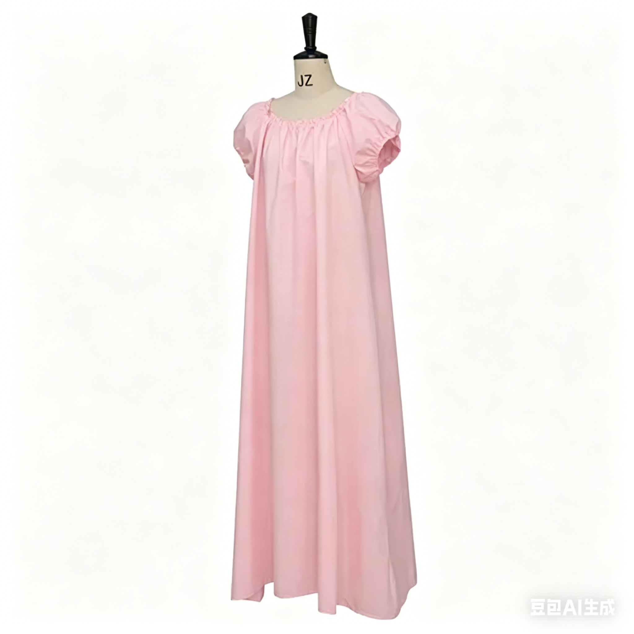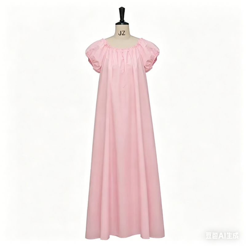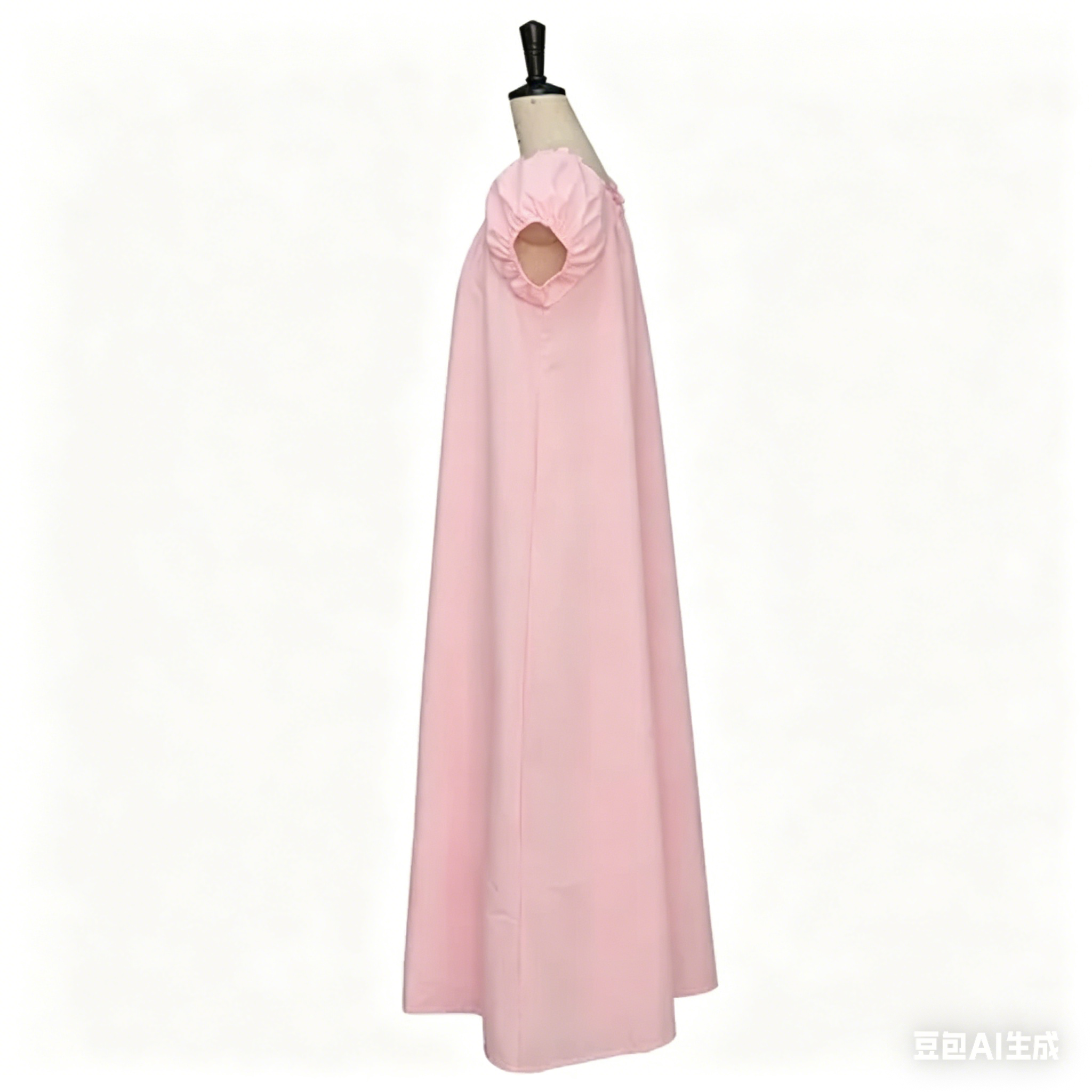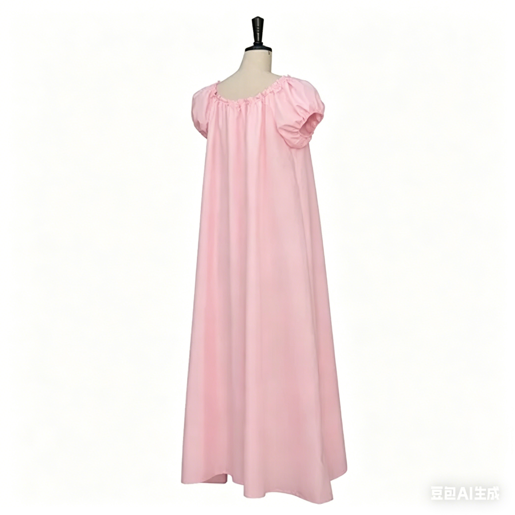 19th-century fashion, creating a flattering, elongated silhouette. The full, floor-length skirt drapes gracefully, while