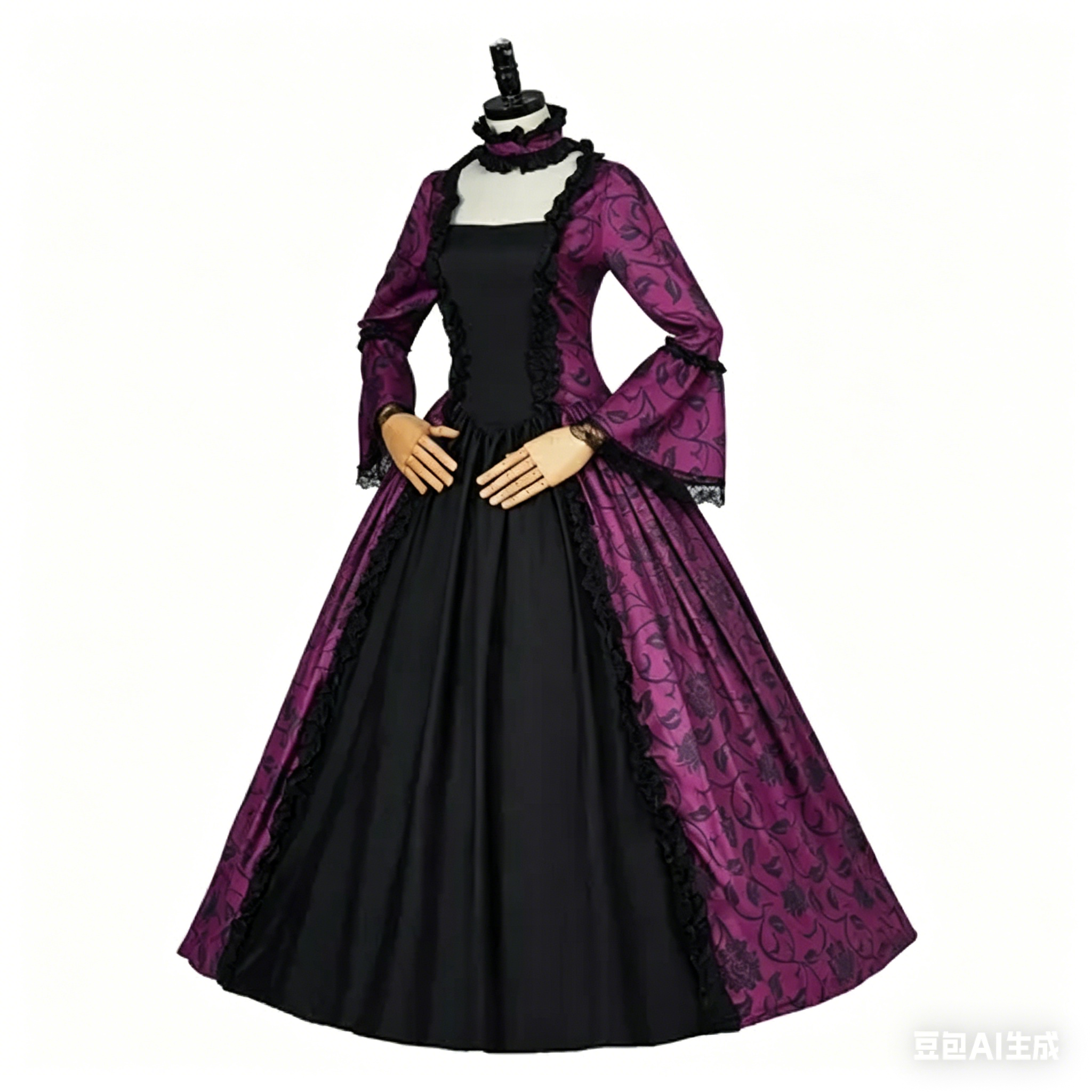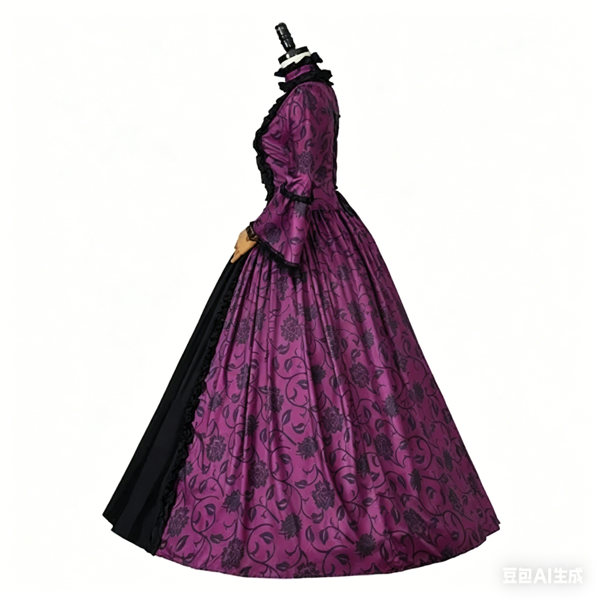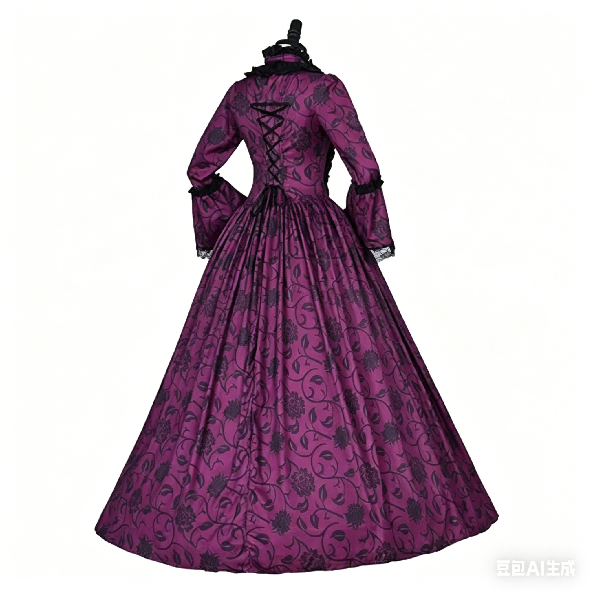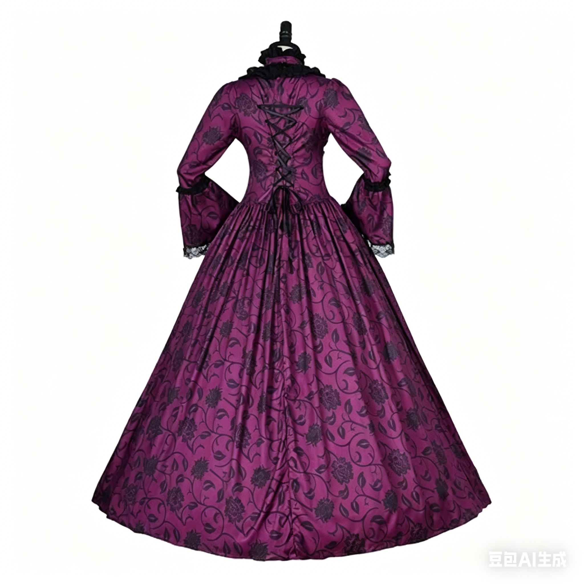 and costume parties. The exquisite floral pattern and gothic accents make this dress stand out in any crowd, blending historical