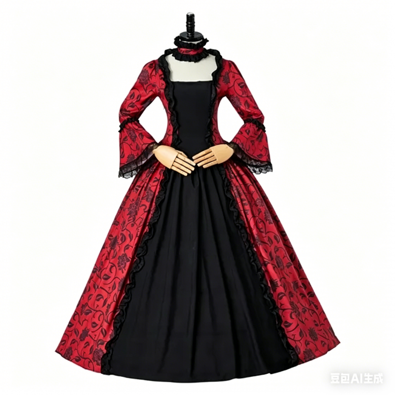 ✅ Authentic Victorian & Renaissance Silhouette: The gown features a structured bodice, flowing floor-length skirt,